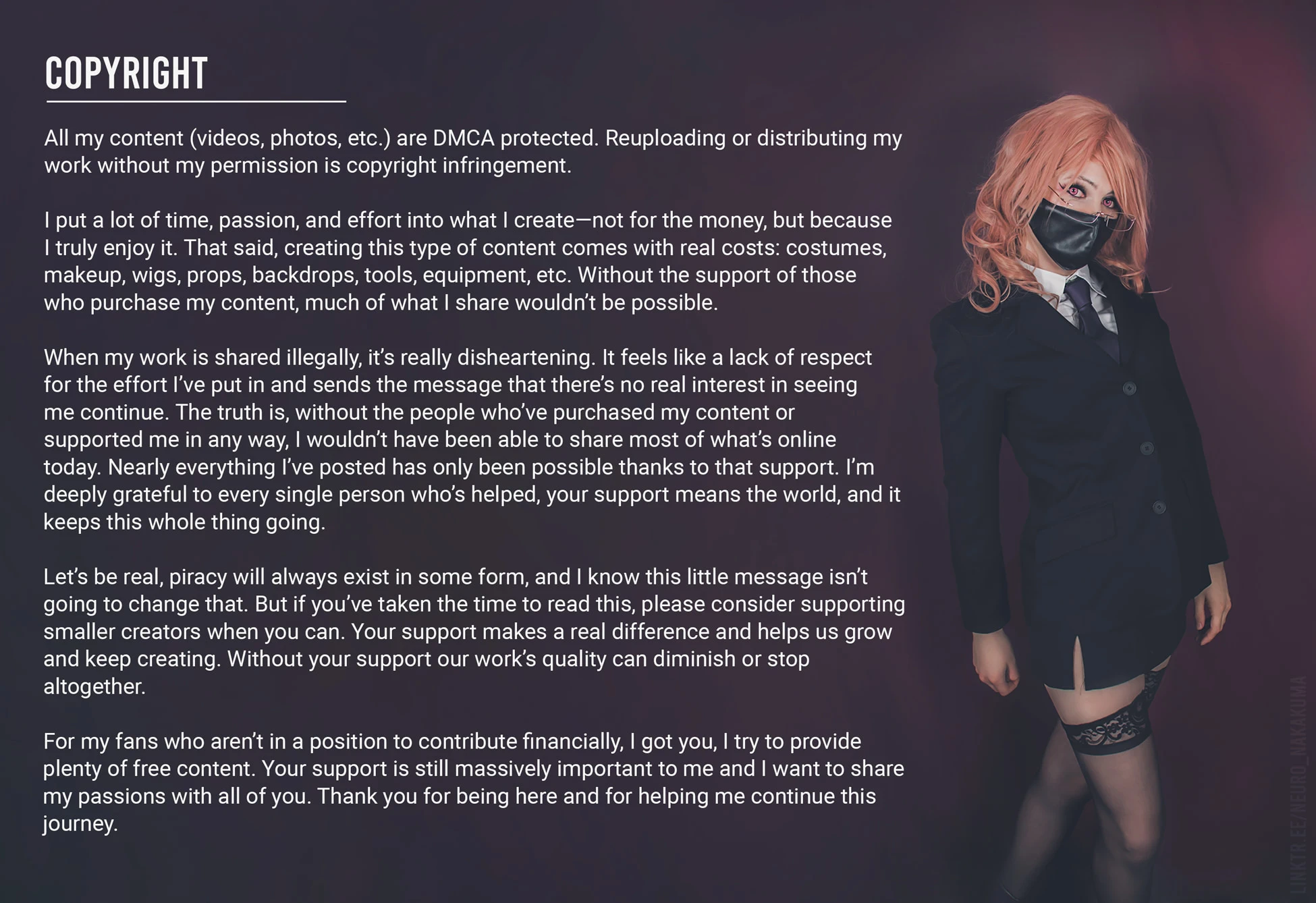 Heya! If you wanna learn a bit more about me and where all my content is, check out the images below 🥰